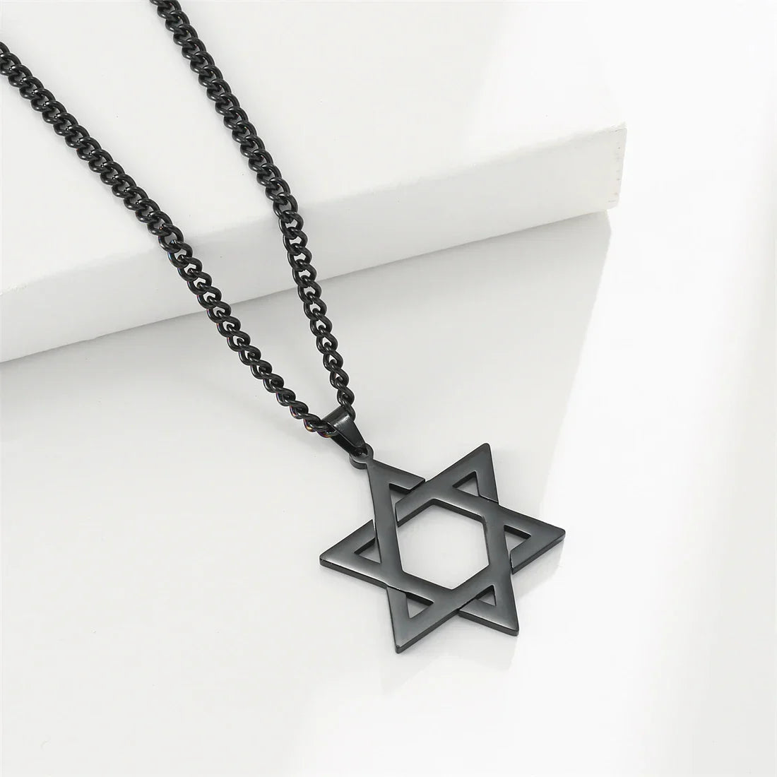 Embrace timeless symbolism with this Star of David pendant necklace — a classic six-pointed star design available in gold, silver, or black stainless steel. A meaningful accessory for both men and women.